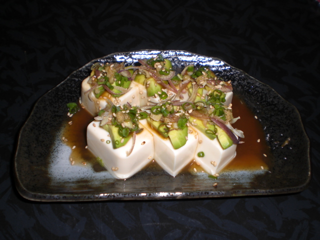 冷奴にアボガド+みょうが+青ネギ+いりゴマ
